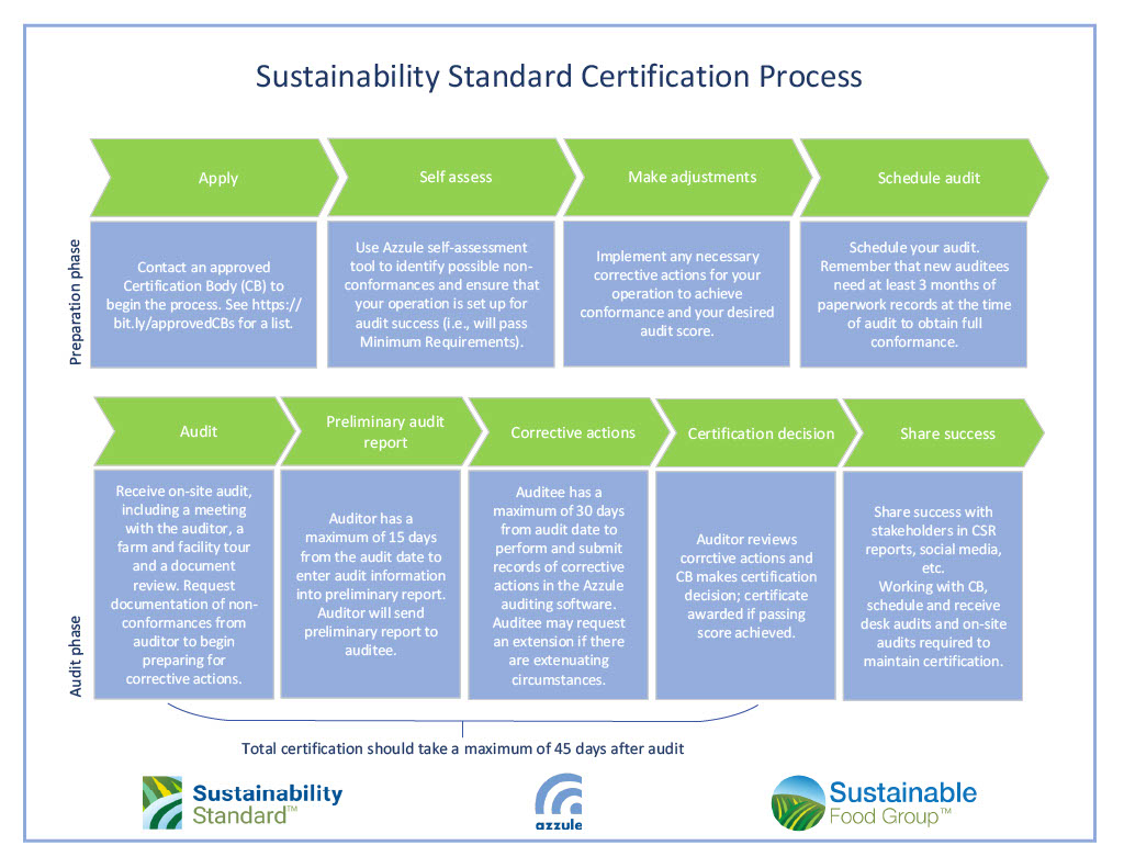 Self-assessment and certification to The Sustainability Standard evaluates the extent to which a product has been produced in a sustainable way from planting to distribution. Audits may also be combined with food safety audits, with potential to save participants time and money.