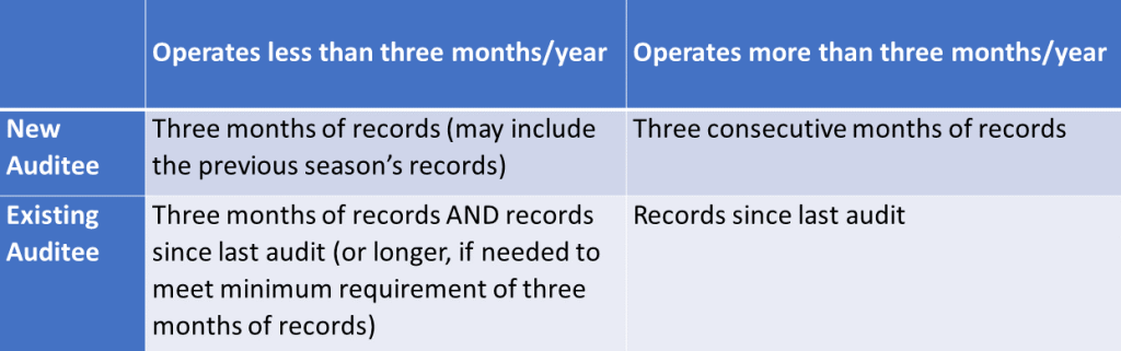 If an auditee has less than 3 total months of documentation for review, the auditor cannot award full credit for paperwork questions.